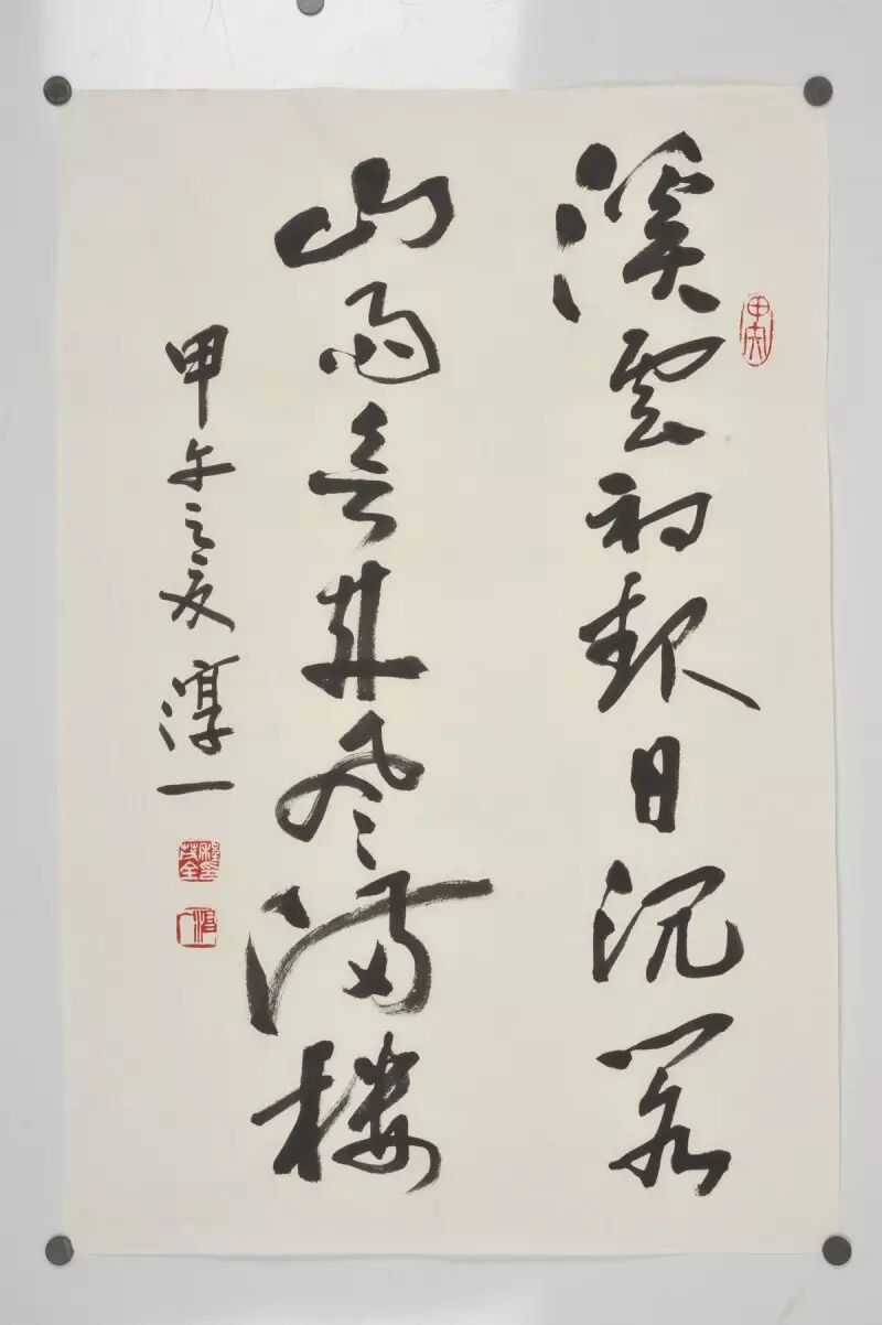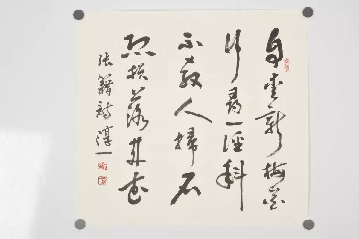 面对宣纸,淳一悬腕挥毫时,若有旁人突然拽其笔而不得,可见其腕力、定力、手上功夫。他年近六十,以十指撑案,仍可支撑起身躯呈水平状悬空,足可令人称奇。