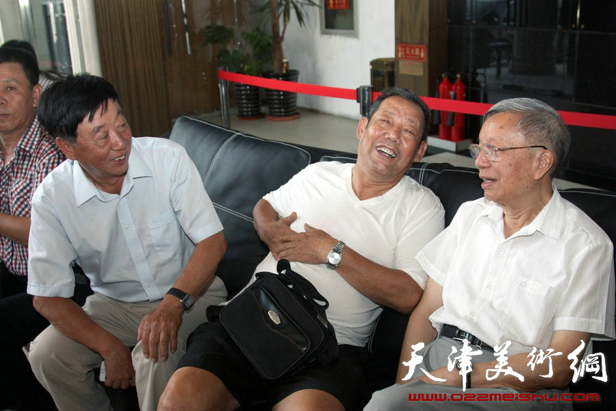 天津体育之光书画院7月19日在市全民健身活动中心成立,图为(左起)黄东生、关宏民、钱其璈交谈。