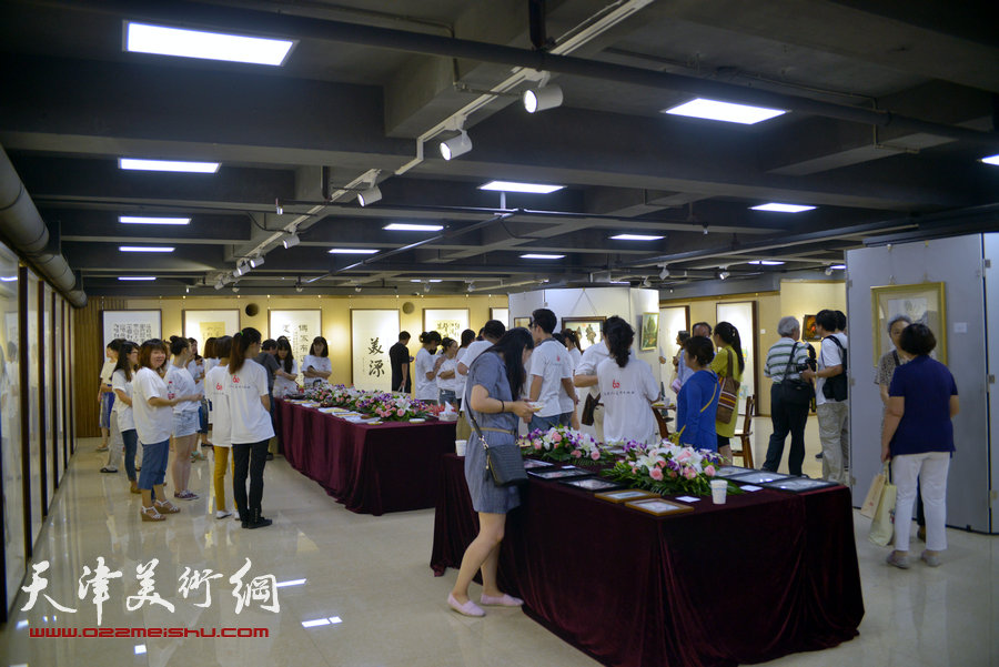 “画韵书香”天津人民美术出版社建社60周年职工书画作品展8月14日在天津人美艺术展厅开幕。图为开幕仪式现场。