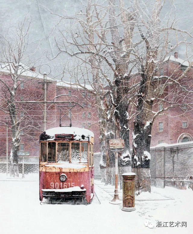 何红舟,《桥上的风景》,油画