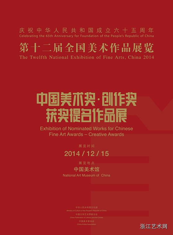 由中华人民共和国文化部、中国文学艺术界联合会、中国美术家协会主办的“第十二届全国美术作品展暨中国美术奖·创作奖、获奖提名作品展”将于2014年12月15日至2015年1月5日在中国美术馆展出。
