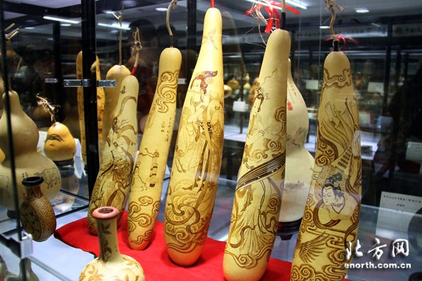 12月26日上午,由天津市葫芦工艺协会主办,今晚文化艺术中心、天津市工艺美术学会等单位协办的“中国(天津)第一届葫芦文化艺术节”在今晚报大厦文化中心举行。本届葫芦文化艺术节的主题是“中国葫芦•福禄中国”。葫芦节吸引了来自天津、上海、广东等19个省市的400余名艺术家和爱好者参展。很多来自香港、台湾的葫芦艺术家也带来了题目制作的葫芦精品。