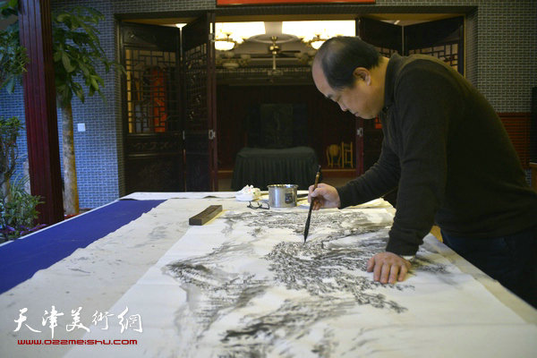 天津美术网讯 2014年12月31日,天津著名画家皮志刚、陈之海、孙占元、戴照林、丛合滋等人来到悟禅金石书画院,开展迎新年书画创作活动。他们现场挥毫泼墨,创作了多幅书画精品,既有气势磅礴的山水画,又有清新动人的花鸟作品,充分彰显了画家们深厚的绘画功底,以及对新一年的祝福之情。