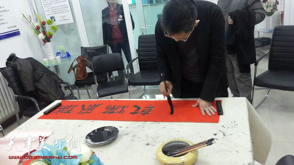 图为天津人民美术出版社社长李毅峰为社区“送福”。