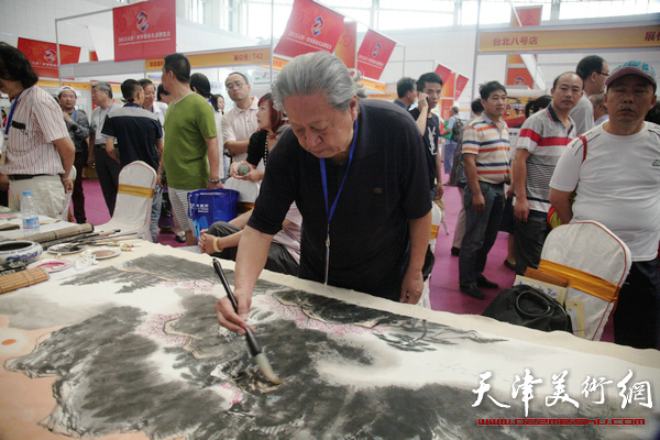 “芳墨结侨缘·丝路连津门-海外侨界知名书画家展艺天津交流联谊会”在天津梅江会展中心举行,图为王山岭。