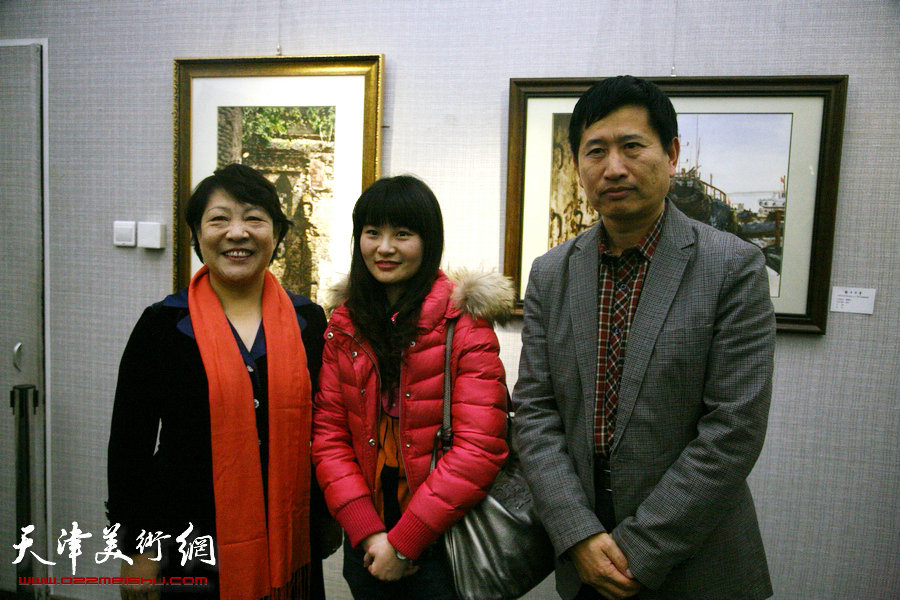图为张俊芳、李桂金、蔡露滋在蔡露滋作品前。