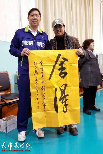书法家刘春雨与天津女排队长陈丽怡在现场。