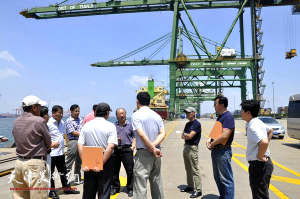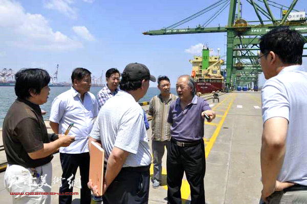 王书平与画家们在天津港太平洋国际集装箱码头。