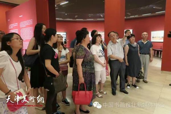 观展人员在中国书画报社党支部书记何东(右前一)的带领下进入展馆。