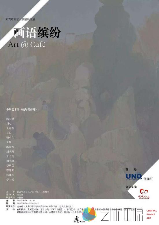 天津美术网讯 由黄雪媛担纲策展人的《画语缤纷——Art @ Café》将于2016年8月28日在上海开幕。 14位艺术家、50余件作品以更接接地气的方式阐述不同地域文化的共生与变异。