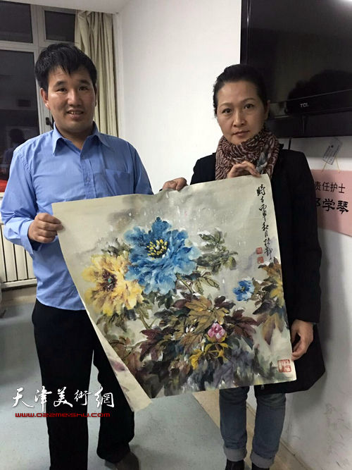 天津美术网讯 近日,天津青基会书画院院长石伟与天津工业大学艺术与服装学院张静来到天津市第一中心医院看望藏族男孩小洛松,并一同带来天津美院教授李娜、天津工业大学肖英隽的问候。现场,张静代表李娜、石伟、肖英隽将她们精心创作的美术作品赠送给小洛松的家人,希望通过义卖的善款用以帮助小洛松后续的康复治疗。同时,石伟代表四位爱心艺术家捐给小洛松1000元慰问金。