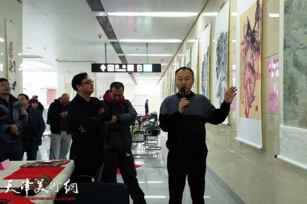 本次活动的参展作品围绕建设美丽天津、印象天津为主题,以中国画的形式展示中国传统文化,由城市画派艺术家对展览作品进行精彩讲解。之后活动现场,各艺术家们挥笔洒墨,写下来新年祝愿,为天津地铁送来“平安地铁”的祈愿。各书画名家现场题字写春联,表达对新年的美好祝愿。