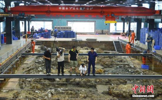 资料图:2014年5月23日,广东省文物考古研究所副所长、“南海一号”考古队领队刘成基表示,“南海一号”考古发掘第一阶段正式结束。图为发掘现场。中新社发 索有为 摄