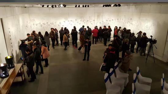 胡宁娜院长亲临展览现场,接受各家媒体的采访。并在观展结束后,与前来观展的美术爱好者、南通大学艺术学院的同学们进行了非常热烈的交流互动。胡院长从自己的人生经历讲到自己的艺术创作,观众们踊跃提问,胡院长耐心讲解。大家都深受启发,本次画展堪称一场视觉版的协奏曲。展览将展出至2017年3月6日,欢迎大家前来看展!