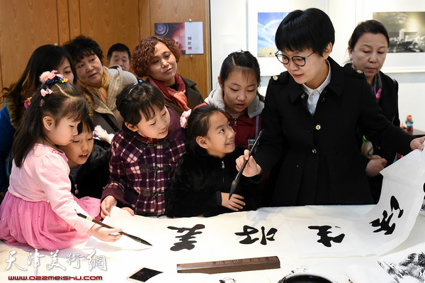 此外,活动现场,魏树东、唐曼清、马胜巧、徐立云、王桂兰等津门女书画家为天津小海豚听障儿童合唱团现场作画,奉献爱心。(包仲川、刘俊苍)