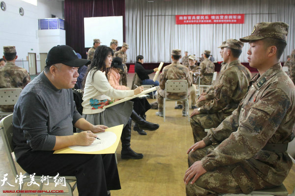天津美术网讯 天津市油画家叶祖茂、万栩、刘武进、刘志平、刘莉莉、黄亦民、何成;水彩画家滑寒冰、高维星、魏瑞江;国画、书法家刘志君、赵寅、李同、王洪春、张荷芝、黄雅莉等3月9日与原天津警备区共建办主任、市国防教育协会会长史秀平大校,区双拥办常务副主任孙承刚、和平区文联秘书长朱春生等一同到驻津部队某部,参加和平区爱国拥军服务中心“五进军营”之一的文化进军营活动。