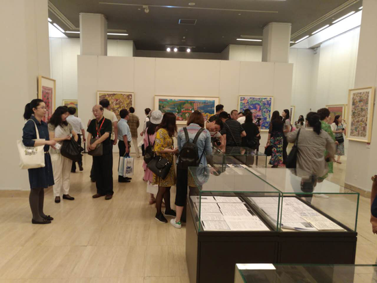 天津美术网讯 5月18日上午10时,“中国精神·中国梦”全国农民画创作展在中国美术馆中央方厅火热开幕。本次展览由中国文学艺术界联合会、中国文学艺术基金会、中国民间文艺家协会、中国美术馆共同主办。中国文联党组书记、副主席李屹,中国文联党组成员、书记处书记陈建文,中国文联副主席、中国民间文艺家协会主席潘鲁生,中国民协分党组书记、驻会副主席邱运华等领导出席了开幕式。