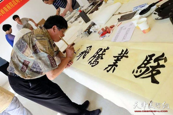 书画家现场挥毫泼墨,气氛亲切而热烈。