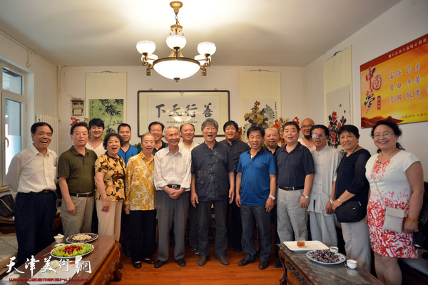 天津美术网讯 今天(6月5日),“墨韵茶香-哈哈哈俱乐部”在天津爱心之家文化传播有限公司成立。天津书画名家李西源、马宇彤、杨建国、王山岭、袁桂兰、解俊茹、李家尧、王旭、党伯莲、杨连生、徐金岭、郑继锋,天津市传统文化产业发展协会常务理事、天津市传统文化产业发展协会内观促进会副会长、天津爱心之家创始人魏三利出席了成立大会。书画家们在现场挥毫泼墨,创作了多幅精品力作,以此庆祝“墨韵茶香-哈哈哈俱乐部”成立。