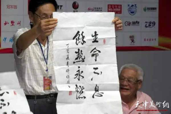 史召环在现场展示穆祥雄的书法。