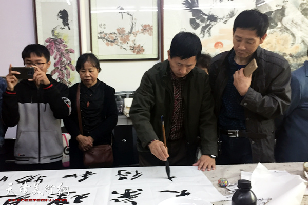 左起:陈元龙、张文圣、李庆增、黄枕石在现场创作。