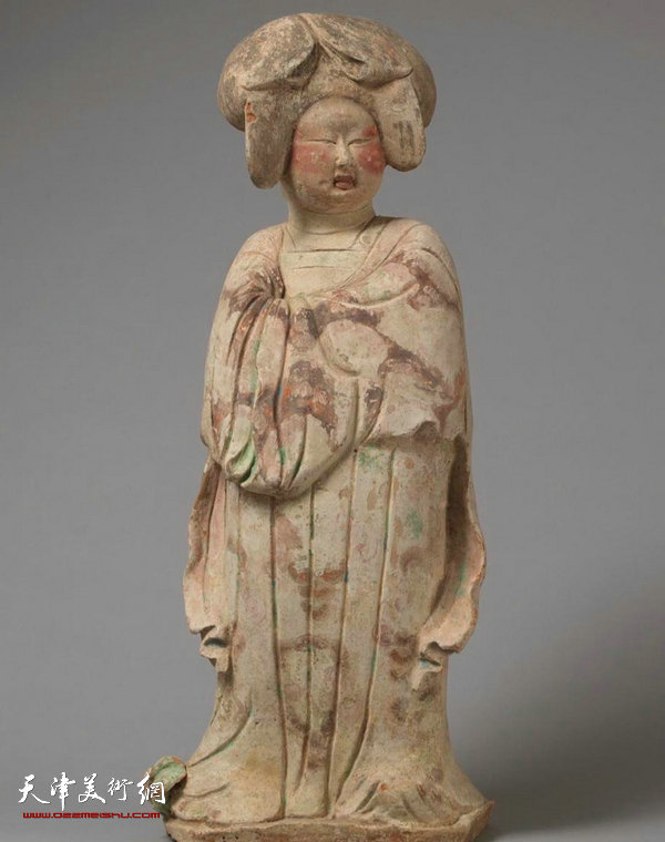 AN EXCEPTIONALLY RARE LARGE FIGURE OF A COURT LADY EARTHENWARE OF PIGMENTS