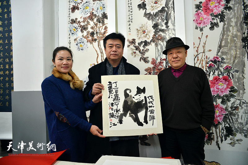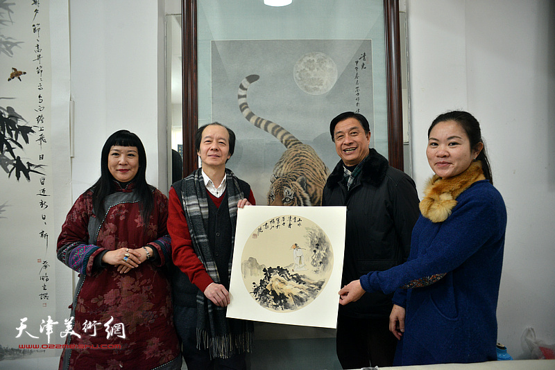 刘开基、王素清等与书画家唐云来、王筌力、黄雅丽在活动现场。
