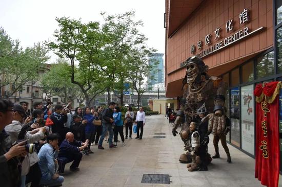 开幕式现场,中国知名艺术家、同时也是上海逸夫职校、上海视觉艺术学院校友的马良及其团队带来的最酷炫、最高大的“嘻嘻福”巨型木偶装置特别表演拉开本次展览的序幕。
