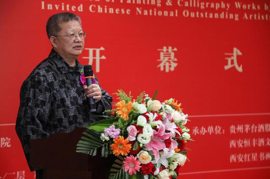原兰州军区司令员李乾元上将,中国国家画院院长杨晓阳,中国贵州茅台酒厂(集团)有限责任公司党委书记、总经理李保芳,中国国家画院副院长、书法篆刻院执行院长曾来德,中国画学会创会理事、贵州中国画学会会长王振中,艺术家代表高卉民等嘉宾在开幕式上发言,开幕式由著名主持人郎永淳主持。
