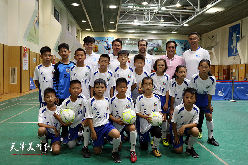 天津体育之光书画院书画家、体育界知名人士、小足球运动员在活动现场。