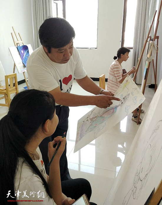 笔会上,来自天津的8位画家还共同创作了山水画《江山如画》、花鸟画《昆仑风色》、人物画《昆仑讲学》等三大幅国画。
