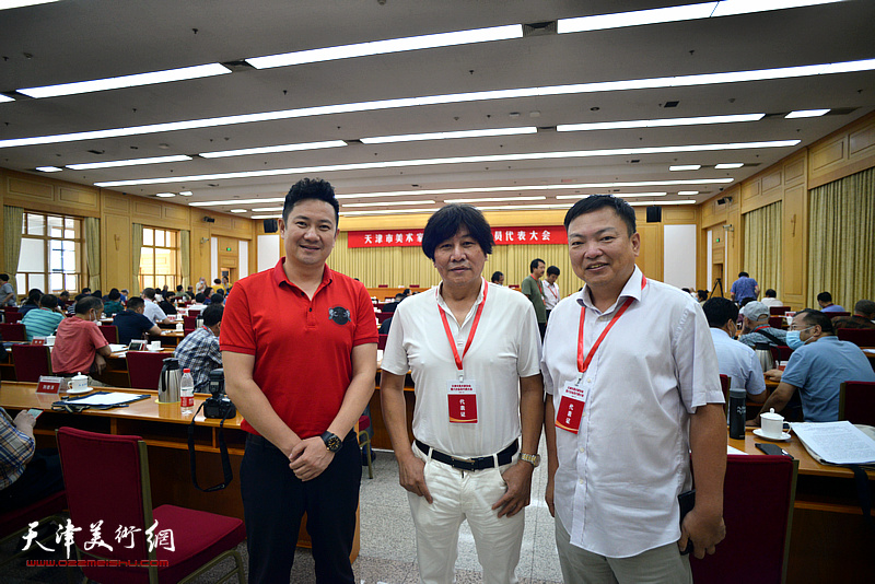 万镜明、李志、商移山与天津市美术家协会第六届主席团成员王书平、于小冬、马驰、尹沧海、李毅峰、陈治、范扬、孟庆占、贾广健、张福有在大会现场。