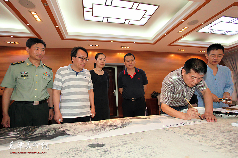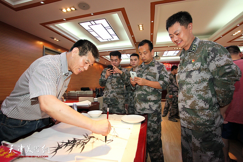 天津美术网讯 7月30日,在“八一”建军节来临之际,天津画院走进津南区人民武装部,开展“书画进军营 共叙鱼水情”慰问活动,为广大官兵送上节日的问候,传播传统文化艺术,丰富官兵的精神文化生活。
