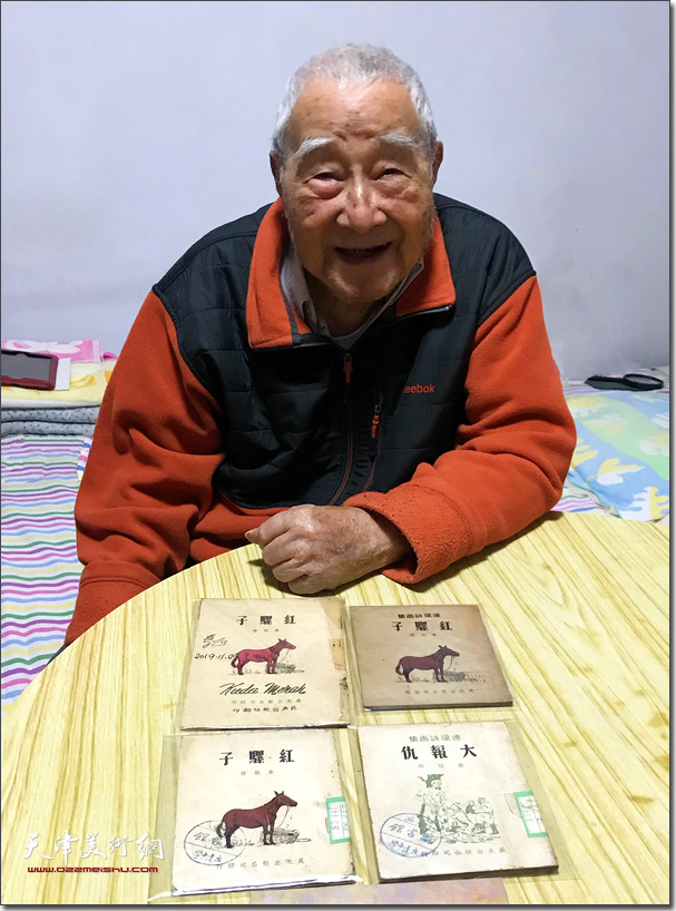 2017年1月,天津市美术家协会主席王书平带队,看望老艺术家秦征先生。图为王书平、史振岭、李耀春、张福有与秦征先生在一起。