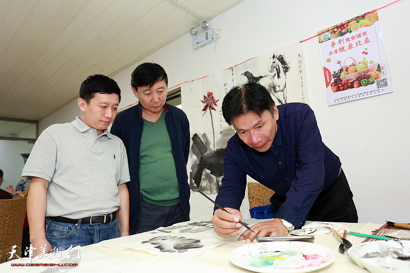 韩祖音、刘荣生、仝福东在活动现场挥毫创作。